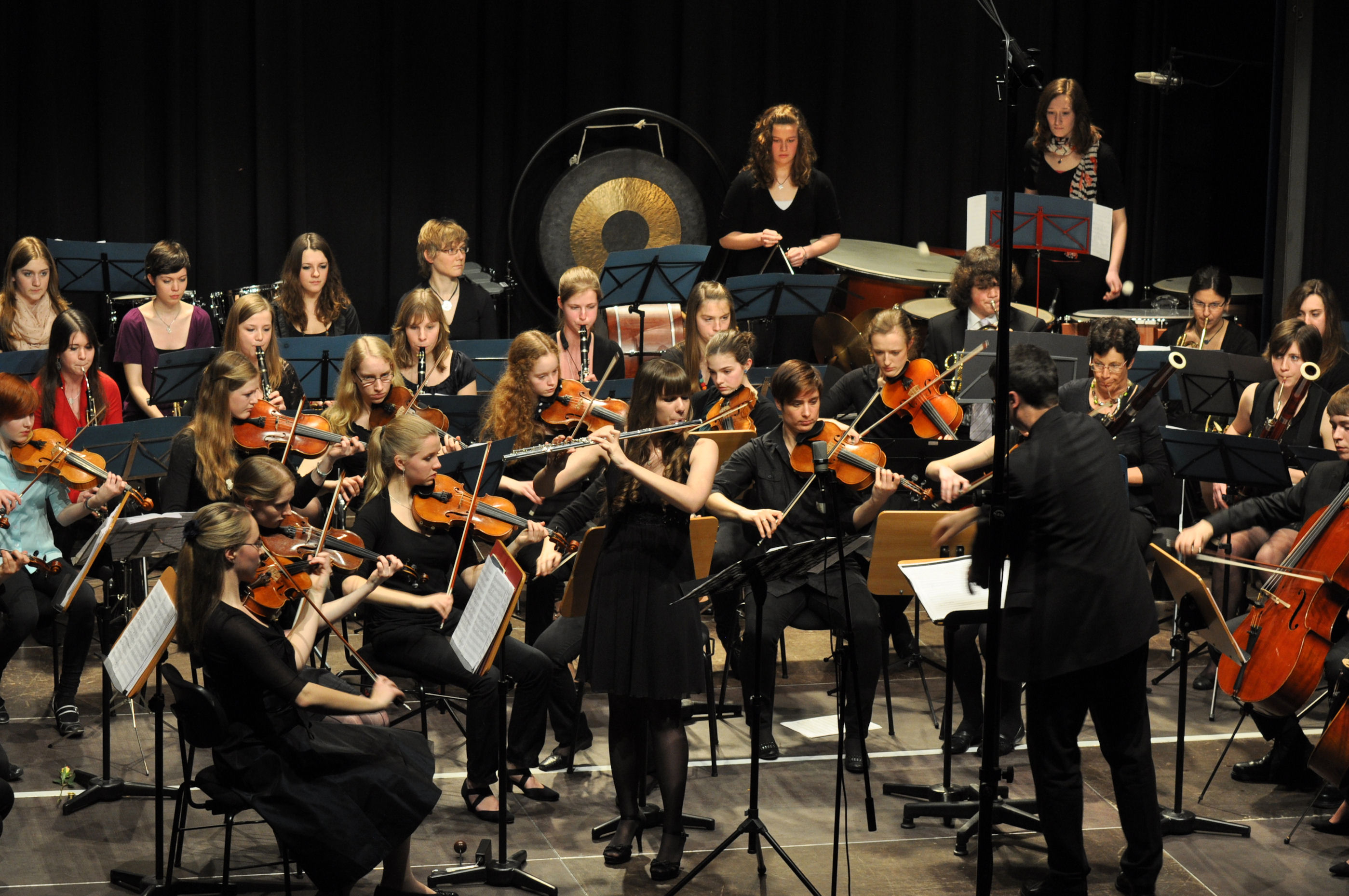 Die fortgeschrittenen Instrumentalistinnen (ab Klasse 9) proben jeden Freitag (14:00-15:30 Uhr) im Hauptorchester. Ziel der Orchesterarbeit ist es, den Schülerinnen ein stilsicheres Musikzieren auf anspruchsvollem Niveau zu ermöglichen. Zu diesem Zweck ergänzen Workshops mit Profimusikern die regulären Proben; und auch die alljährliche Probenwoche in der Jugendherberge Bacharach gehört kurz vor dem Konzert zum festen Bestandteil der Orchesterarbeit.