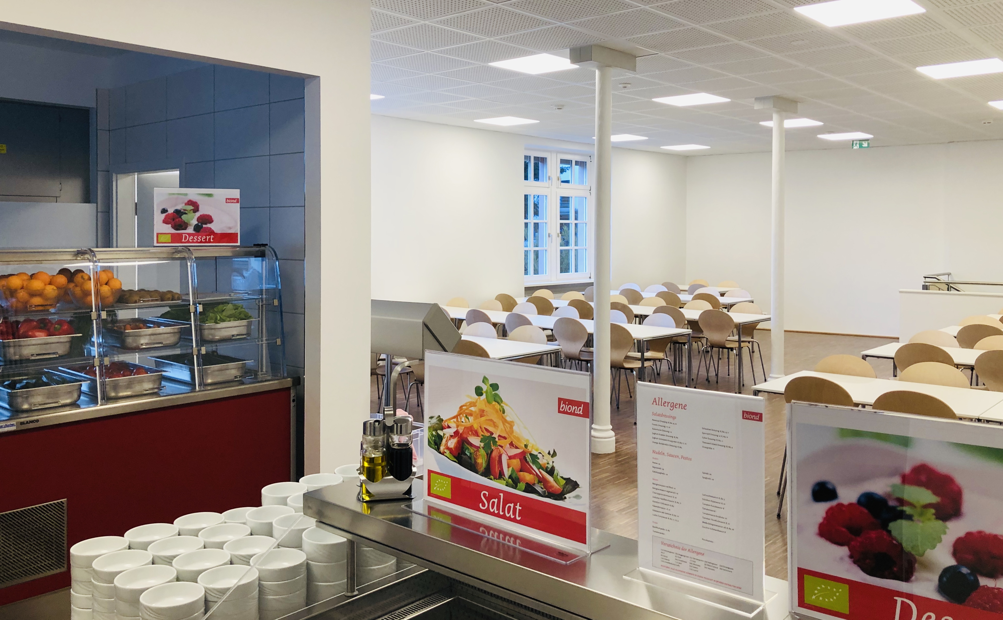 - Unser Caterer biond ( www.biond.de) hat montags bis donnerstags ein All-you-can-eat-Angebot inkl. Getränke. Die Auswahl reicht vom Salatbuffet mit regionalem Salat und Rohkostangebot, einem Hauptgericht, gesundheitsoptimierten Snackprodukten bis zu Nudel- und Dessertbar. Eine Vorbestellung ist nicht nötig, jeder darf essen, worauf er am meisten Appetit hat.