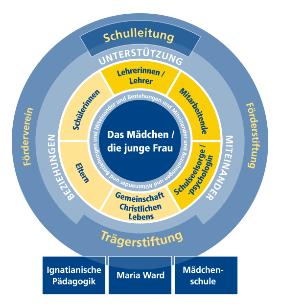 Die ignatianische Pädagogik und die Gründungsanliegen von Maria Ward geben der Schulgemeinschaft ihre besondere Prägung. Spürbar wird dies im Alltag durch einen Geist des gegenseitigen Unterstützens und Wertschätzens, getragen von Toleranz und Weltoffenheit.